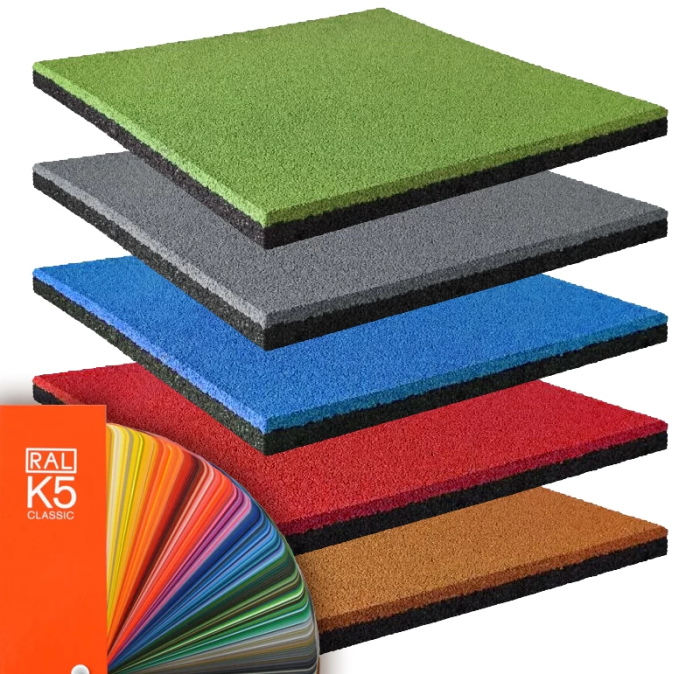 резиновая плитка 500х500х30 мм, двухслойная, цвет по ral